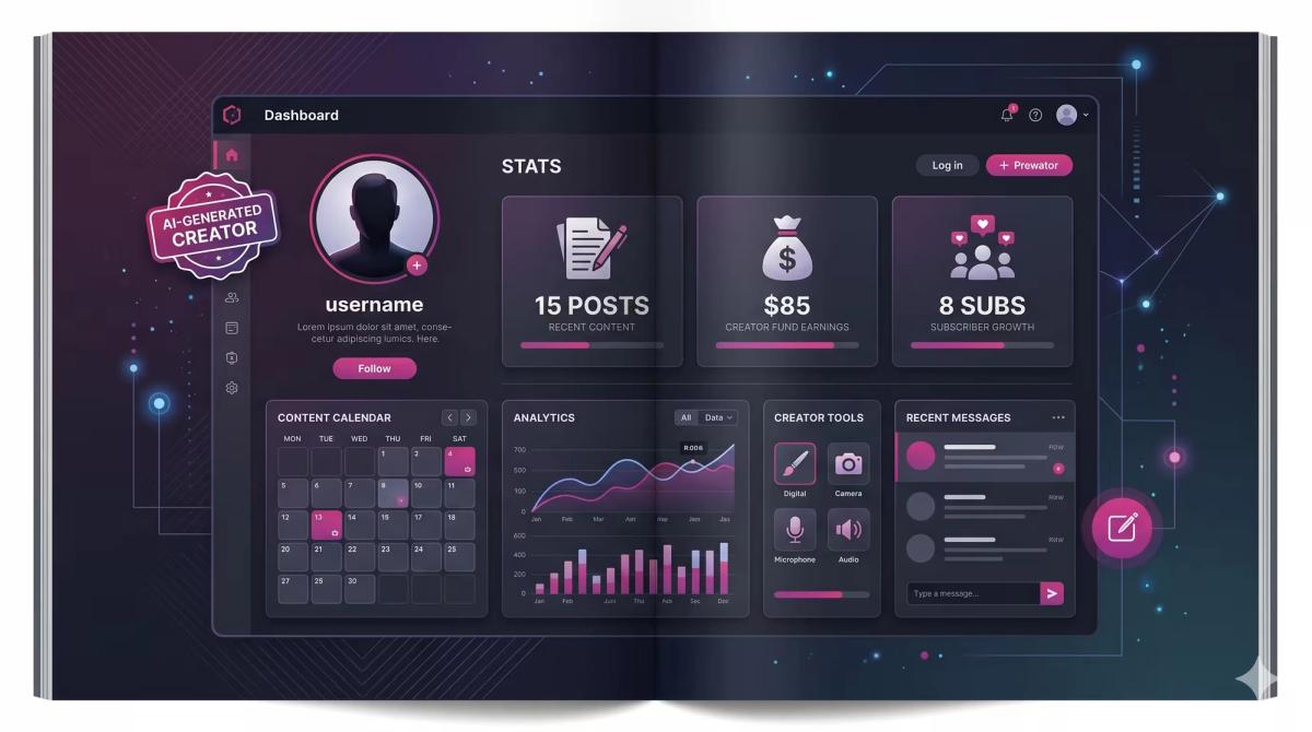 Part des créateurs IA : ~15% des revenus plateforme viennent des créateurs IA ; les top performers gagnent 20 000 $+/mois